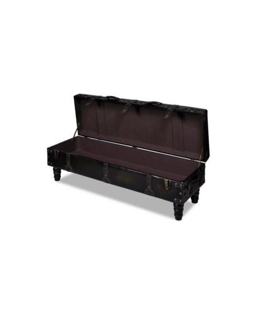 Brown Storage Bench 43.7 Dark Solid Wood PineFaux Leather