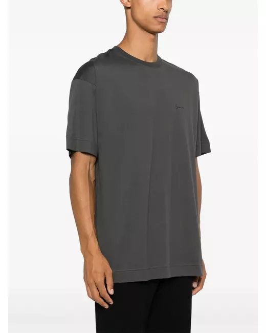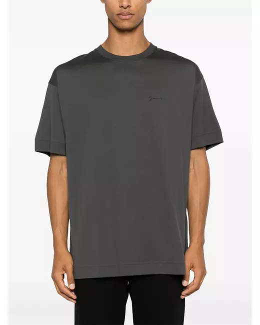 charcoal grey cotton lightweight jersey logo print at the chest crew neck short sleeves graphic print to the rear unlined straight hem