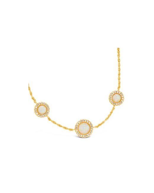 You'll feel like a queen in this elegant bracelet. This dainty accessory features three round opal charms surrounded by cubic zirconia stones. Adjustable to ensure the perfect fit.