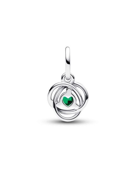 This intricate Green Eternity Circle Dangle Charm is a must-have infinity charm for your Pandora Moments collection. Crafted in lustrous sterling silver, it features an openwork infinity braid decorated with a central green manmade crystal, elegantly surrounded by three clear cubic zirconia. The intricate design symbolizes eternity and adds an additional layer of meaning to the piece. Elevate your bracelet with this timeless piece or gift it as a representation of an everlasting bond.