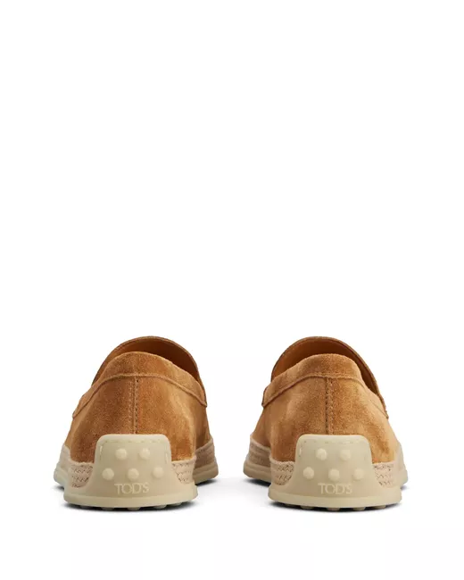 camel brown suede logo-debossed tongue round toe branded insole signature Gommino sole slip-on style