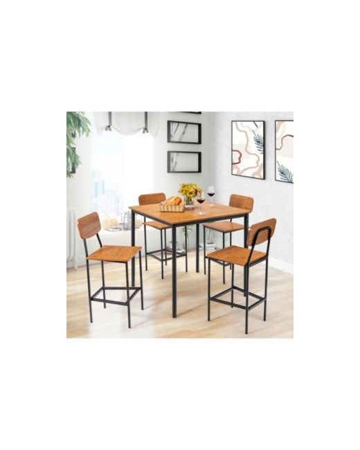Upgrade your dining experience with this 5-piece counter height dining table set, featuring a spacious table and four ergonomic bar stools. Designed with an industrial aesthetic, this set is perfect for family meals or casual drinks with friends. Crafted from durable materials and designed for space-saving convenience, it s an ideal addition to any home, especially in smaller spaces.