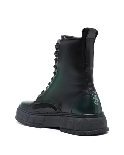 black, green AppleSkin™ smooth grain round toe spray-paint effect logo-print tongue branded heel counter loop handle branded insole ridged platform rubber sole front lace-up fastening