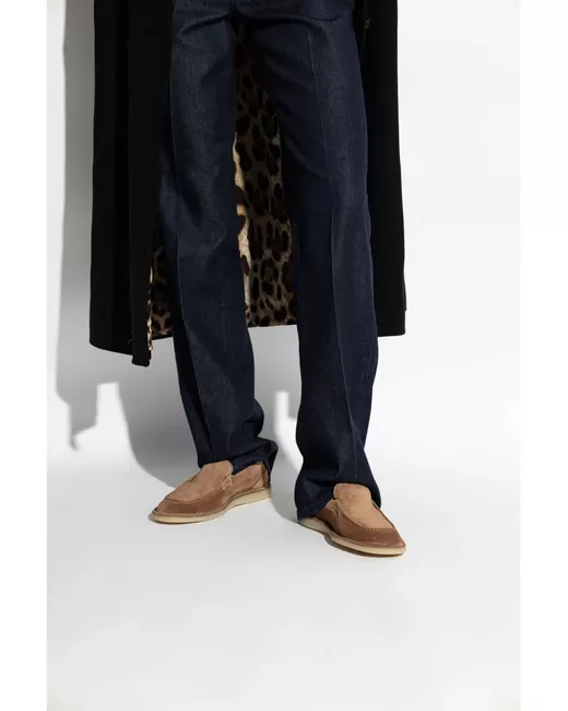 caramel brown calf suede panelled design slip-on style gold-tone logo lettering round toe shearling lining branded insole flat rubber sole