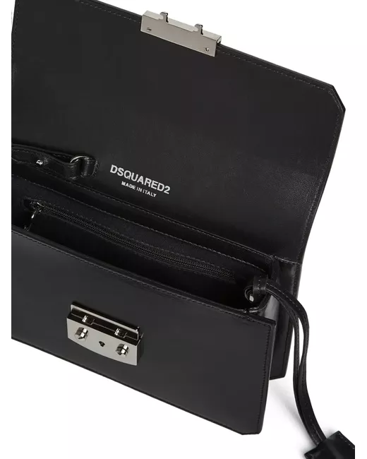 black calf leather engraved logo detachable wrist strap foldover top push-lock fastening main compartment internal zip-fastening pocket internal logo stamp hanging key fob set of keys silver-tone hardware