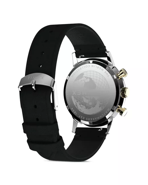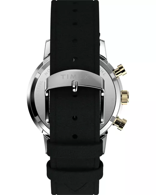 40mm stainless steel quartz movement champagne dial Arabic/index dial sword hands three chronograph sub-dials screw-down crown two chronograph pushers acrylic glass calfskin leather strap pin-buckle fastening water resistance up to 50m/5 ATM