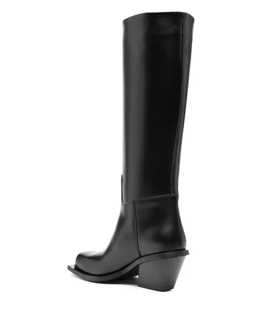 black calf leather square toe panelled design mid-calf length Cuban heel slip-on style