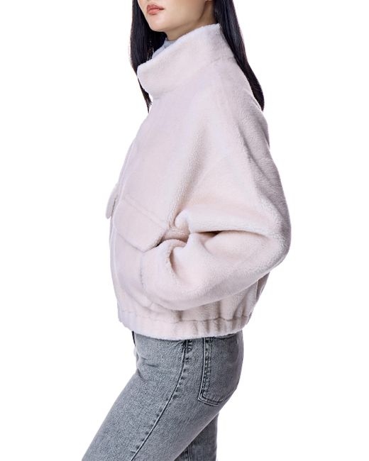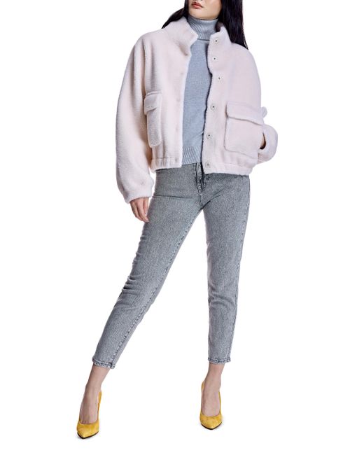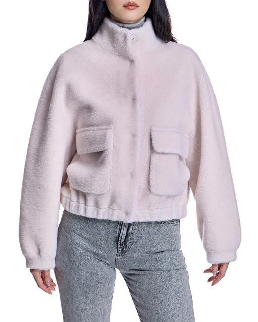 Cropped Lambswool jacket with elastic hem. Stand Collar Straight sleeve with elastic band cuff Snap front closure Patch Pockets with Flaps Shearling Origin: China Shearling Type: Lamb's wool Professional fur clean Imported SIZE & FIT About 23'' from shoulder to hem Model measurements: 5'10'' tall Model is wearing a US size Small. Furs - Fur Salon Direct > Maximilian > Saks Fifth Avenue > Barneys. Maximilian. Color: Blush. Size: Small.