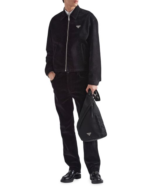 Sleek, minimalist lines are the choice for the new men's bags for Fall Winter 2021. Defined by its hybrid design, halfway between a backpack and shoulder bag, this accessory has one adjustable woven nylon shoulder strap with side-release buckle and is decorated with the iconic enameled metal triangle logo. The silhouette is made of innovative Re-Nylon, a regenerated yarn produced from recycled plastic trash collected in the ocean. For sustainable care to preserve the product's characteristics and reduce microfiber shedding, we recommend not washing the item too often. Let the product air out after every use and have it dry cleaned at a specialized ecological dry cleaners. Adjustable woven nylon tape shoulder strap and side-release buckle Enameled metal triangle logo on the front Zipper closure Trick attachment ring Two external zipper pockets Inside zipper pocket Logo-print Re-Nylon lining Imported 100% Recycled Polyamide - 100% Calf Leather - 100% Solventfree Resin Pu 26.5W x 47.5H (10.4'' W x 18.7'' H) Imported. Lsd Rtw - Prada Rtw > Prada > Saks Fifth Avenue > Barneys. Prada. Color: Black.