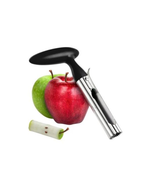 Stainless Steel Twin Blades with sharp, serrated tips designed to smoothly core through any apple, pears, bell peppers, cupcakes and more. After coring your fruits and vegetables the blades simply open-up and dump the unwanted core for convenient disposal.