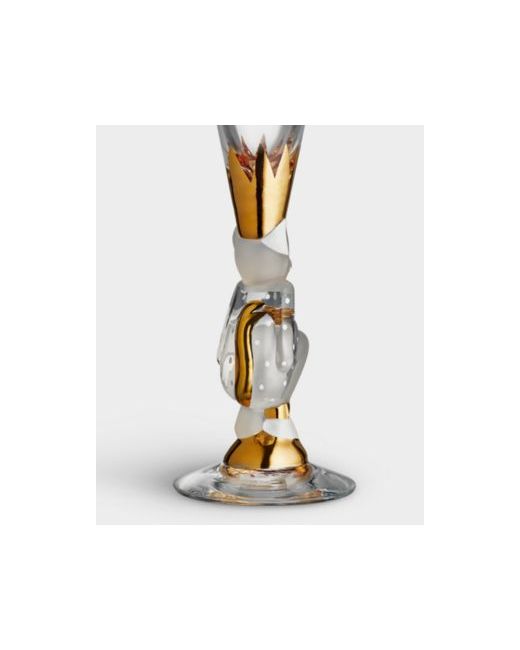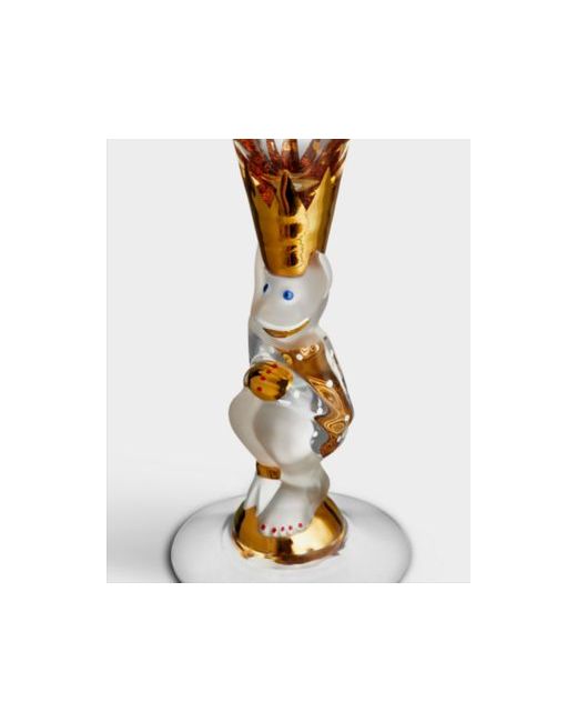 After Gunnar Cyren's passing in 2013, his sons found several sketches of champagne glasses inspired by the snap's glasses in the Nobel collection from Orrefors. The selected design has resulted in luxurious stemware glasses in different color variations. The Sparkling Devil in clear glass is mouth-blown in Sweden with hand-painted details in real 21 karat gold.