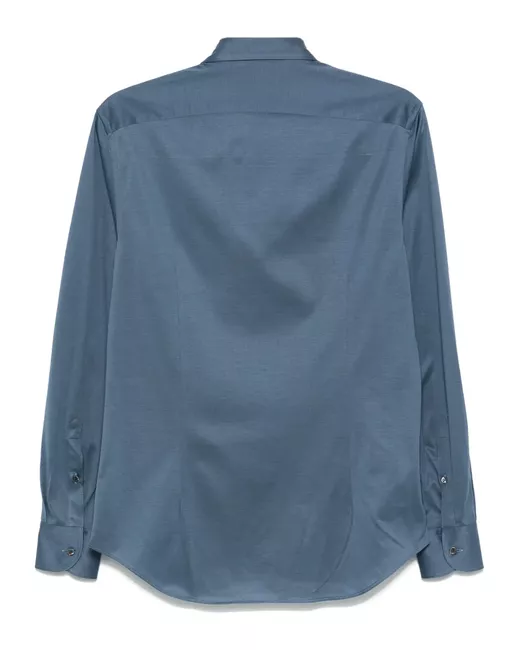 cerulean blue cotton lightweight jersey front button fastening spread collar long sleeves buttoned cuffs curved hem