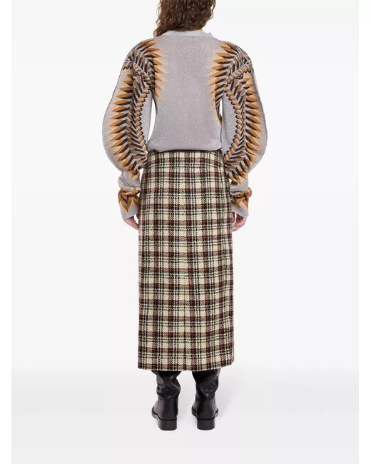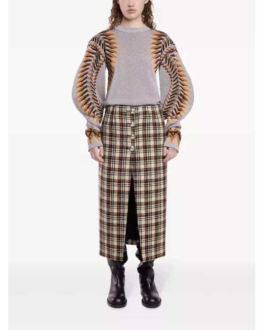 grey/brown jacquard crew neck geometric print long sleeves balloon sleeves