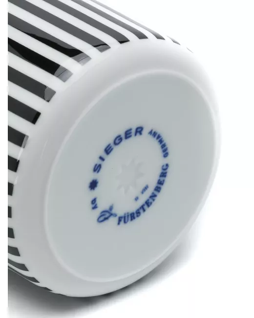 Black, white and gold porcelain cup from Fürstenberg featuring a striped pattern and a gilded rim.