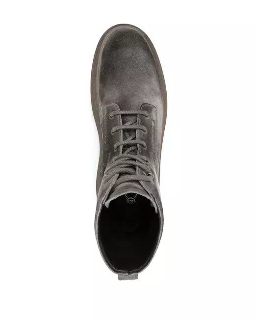 cool grey calf suede distressed effect round toe front lace-up fastening signature Gommino sole rubber sole