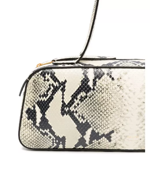 beige calf leather all-over snakeskin print contrasting trim two long top handles top zip fastening main compartment internal logo patch