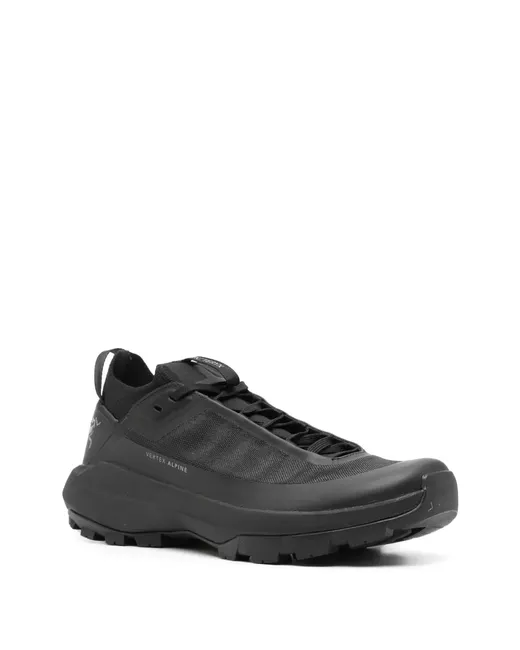 black canvas TPU shank and toe cap logo print to the side double pull-tab at the opening knitted panels sock-style ankle padded ankle branded insole VibramĀ® sole Vibram XS Flash 2 outsole front lace-up fastening