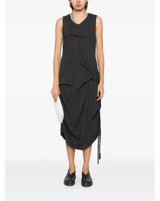 charcoal grey stripe detailing draped detailing elasticated strap V-neck sleeveless asymmetric hem raw edge