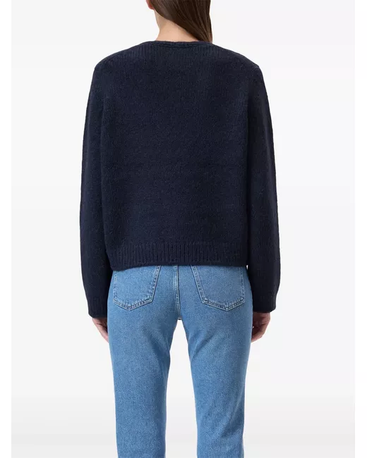 blue alpaca wool-blend ribbed knit V-neck long sleeves straight hem internal logo patch