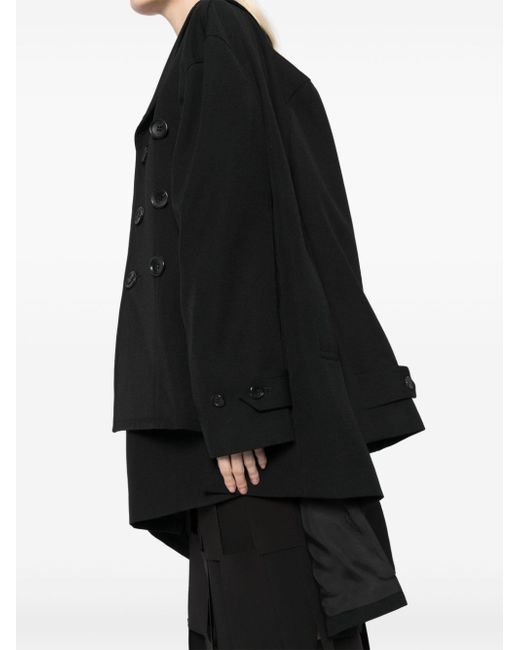 black wool double-breasted button fastening side slash pocket asymmetric sleeves Ulster lapels asymmetric hem This item is in size M and the color is Black