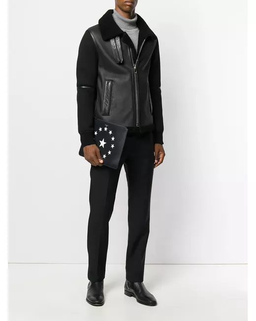 Givenchy's urban style and dark romanticism provides tough-luxe detailing with an unconventional elegance and a refined finish. This black and white leather star printed clutch is a must-have accessory piece for your essentials and features a multi-star print, a top zip fastening and a front logo patch.