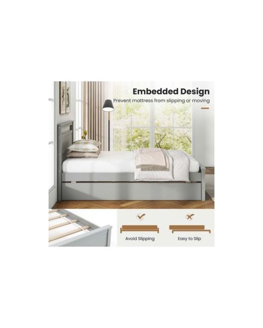 Gray Platform Bed with Trundle Pull-out Headboard Footboard