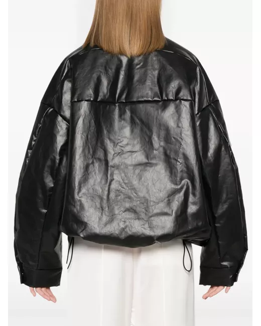 black polished effect concealed front zip fastening baseball collar drop shoulder long sleeves press-stud fastening cuffs two side welt pockets drawstring hem