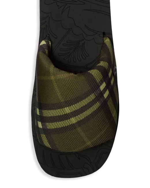 olive green padded design check pattern slip-on style logo patch to the side round toe branded footbed logo at the sole This piece comes complete with a protective dust bag.