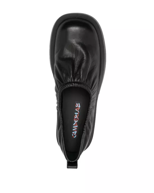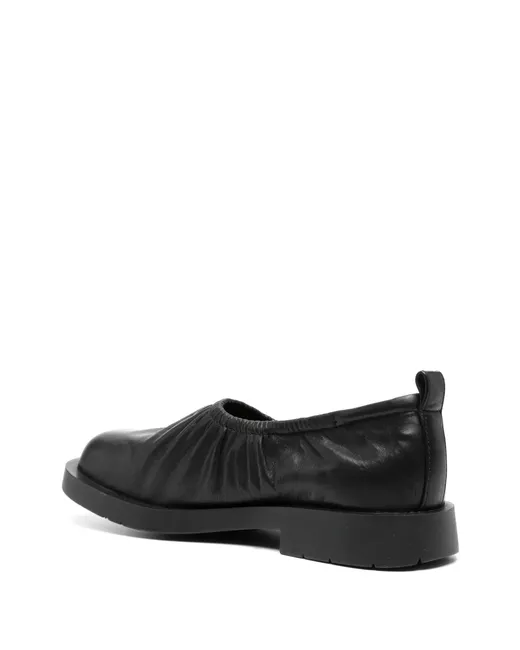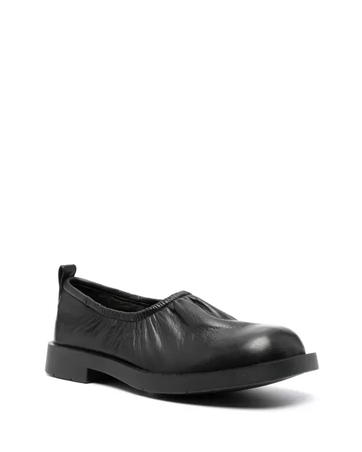 black calf leather pull-tab at the heel round toe slip-on style branded leather insole rubber sole