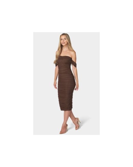 Bebe's Women Ruched Midi Dress effortlessly combines elegance and comfort, making it an essential addition to any fashion-forward wardrobe.