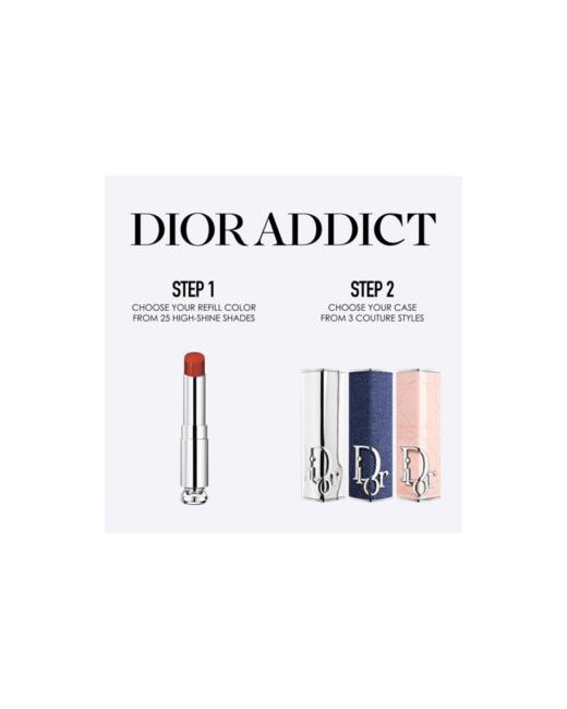 Dior's refillable lipstick cases add the ultimate couture touch to your Dior Addict Lipstick. Choose from three styles inspired by couture creations from the House of Dior. Indigo Denim highlights the raw elegance of denim, Pink Cannage pays homage to the signature code of the House and Metallic Silver shines with mirror-like reflections.