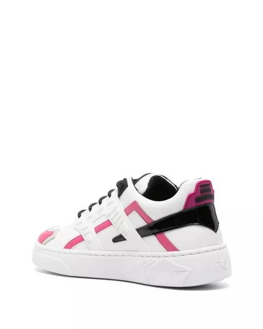 white leather panelled design perforated front lace-up fastening round toe flat rubber sole logo patch at the tongue