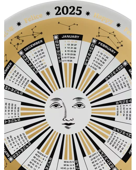 white/black/gold-tone porcelain circular design annual calendar constellation print polished finish