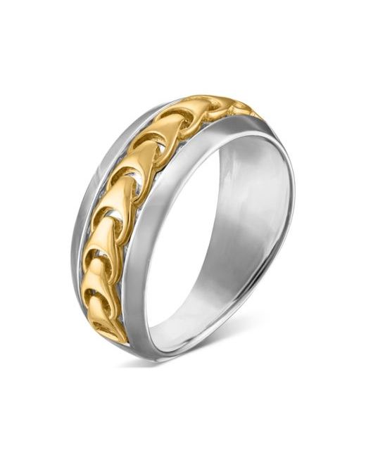This distinguished two-tone sterling silver band ring is part of the Link collection, prominently featuring a center row of the iconic Bulova tuning forks.