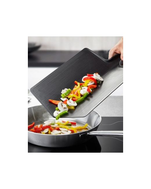 Non-slip ridges on the underside keep the foldable cutting board steady while you cut ingredients. The cutting area can then be folded in half to make it easy to transfer the cut ingredients into the bowl or pan!
