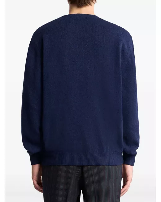 navy blue cashmere fine knit crew neck long sleeves ribbed cuffs and hem