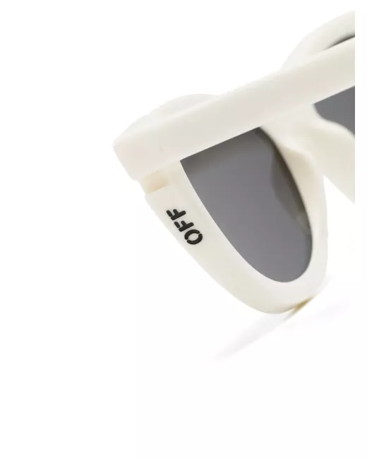 white acetate cat-eye frame grey tinted lenses debossed logo to the side straight arms with curved tips These glasses come with a protective case.