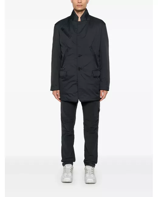 black recycled polyamide padded design front press-stud fastening front button fastening stand-up collar long sleeves logo print at the sleeve multiple zip-fastening pockets two press-stud fastening side pockets quilted lining straight hem