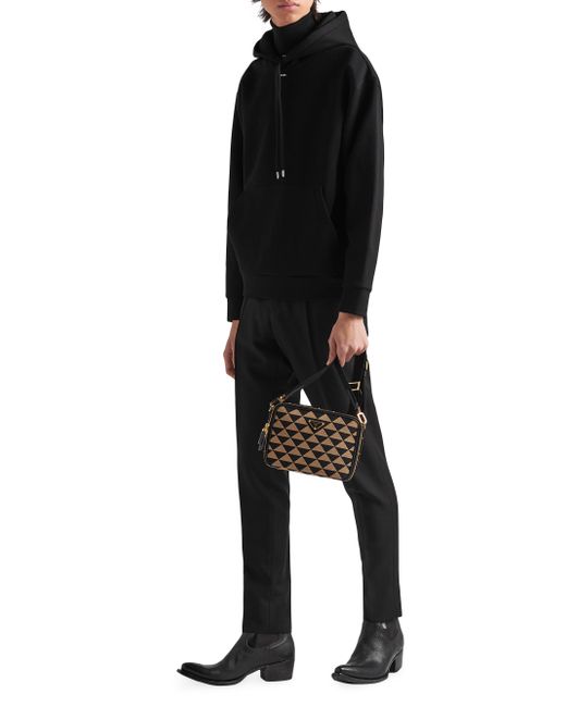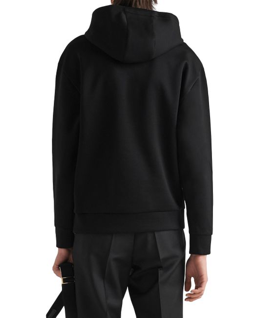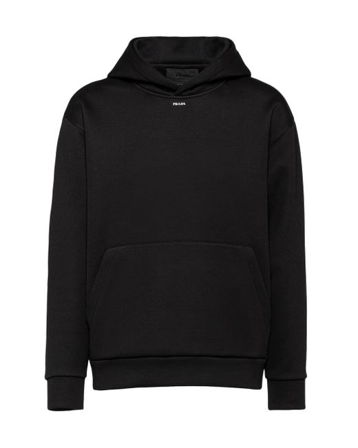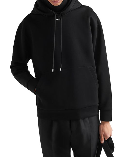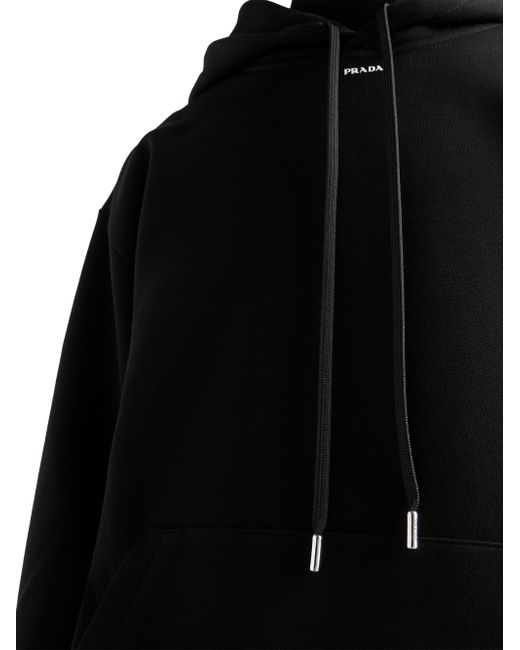 This technical cotton hoodie with an oversized design and sporty allure is decorated with Prada's iconic triangle logo appearing here as a front detail. The garment with long sleeves and pouch pocket has a hood. Boxy fit Long sleeve Attached drawstring hood Cotton fleece hem Cotton fleece cuffs Printed logo Length: 70 cm, Size: M Pouch pocket 70% cotton, 30% nylon Imported. Lsd Rtw - Prada Rtw > Prada > Saks Fifth Avenue > Barneys. Prada. Color: Black. Size: XS.