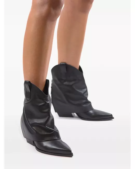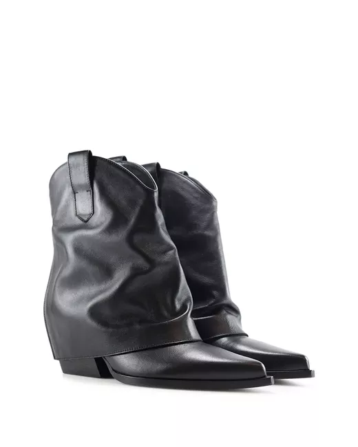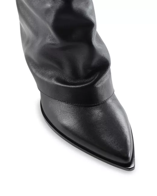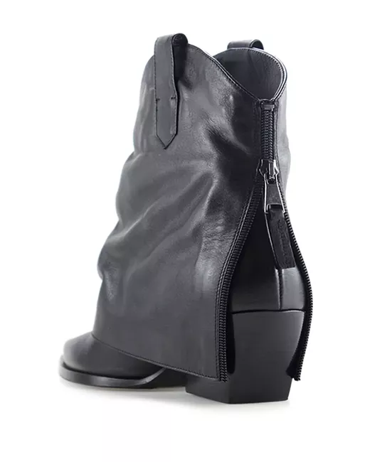 black calf leather smooth grain rear zip fastening block heel double pull-tab at the opening pointed toe branded leather insole rubber sole