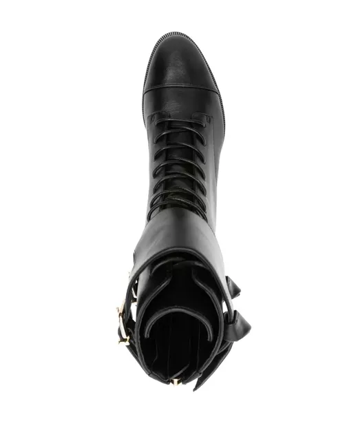 black calf leather smooth grain almond toe side buckle fastening strap detailing front lace-up fastening rear zip fastening low block heel branded leather insole leather sole