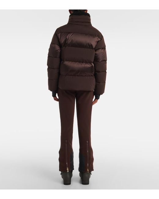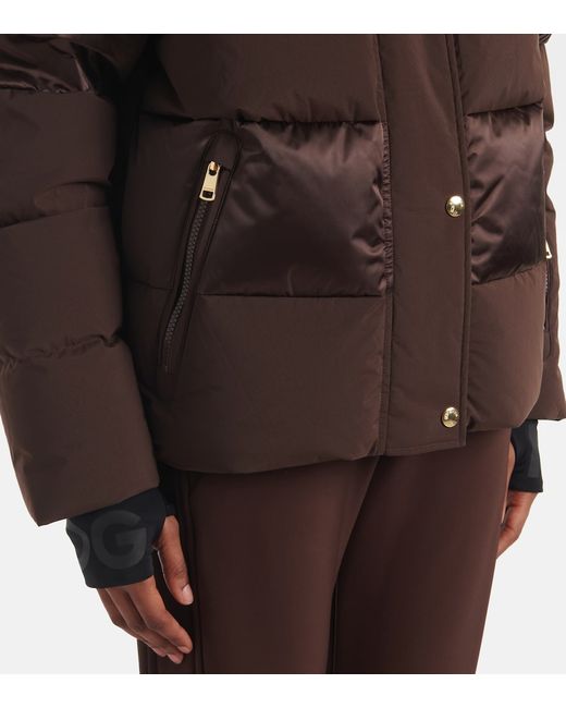 Material: 87% polyamide, 13% elastane. Care instructions: specialist clean. Made in China. Designer color name: 874. Closure: concealed zipper, buttoned front. Pockets: zipped pockets, sleeve pocket. Material II: 100% polyamide. Lining: 100% polyester. Filling: 90% down, 10% feathers. Contains non-textile parts of animal origin.