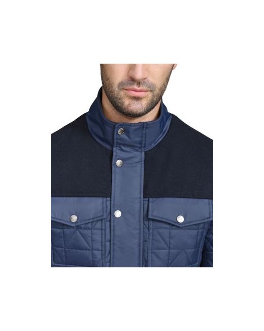 Cole Haan Multimedia Jacket.Color:Navy.Size:X Large.Material:Shell: 100% nylon; contrast trim: 60% wool/35% polyester/5% other fibers; knit trim: 97% polyester/3% spandex; lining: 100% polyester; fill: 100% polyester.Jackets.