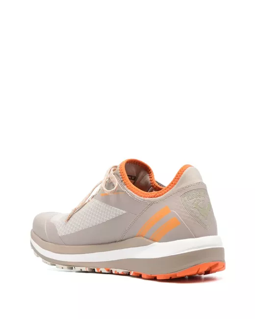 taupe brown logo print to the side logo-embossed tongue stripe detailing panelled design front lace-up fastening branded insole chunky rubber sole round toe