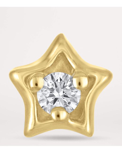 MARIA TASH speaks to the rebels of the jewellery world, conceptualising unique pieces to be worn in all manner of piercings, each elevated by her use of fine materials, precious gems and expert crafting. Inspired by the night sky, this celestial threaded stud is a minimalist offering, with the nickel-free and hypoallergenic 14-karat yellow gold setting punctuated by a petite solitaire diamond to the heart of the star.Please note: For threaded studs, post sizing other than 6.5mm can be requested through Customer Service.