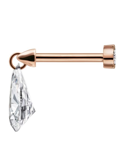 Hailing from New York's East Village, MARIA TASH has revolutionised the jewellery industry for its dainty yet subversive pieces. Minimally designed to draw attention to the natural beauty of its jewel, this threaded stud earring spotlights the label's skill in creating an illusion of floating diamonds with a single pear diamond appearing to dangle down from the hidden nickel-free, hypoallergenic 18-karat rose gold backing, granting it showstopping power and gentle movement.