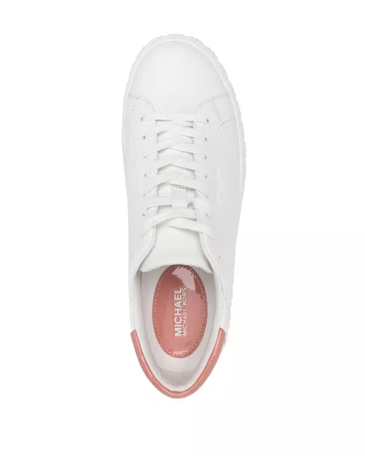 white/pink calf leather smoothing finish panelled design round toe logo-embossed tongue embossed logo to the side contrasting heel counter branded leather insole logo engraved rubber sole front lace-up fastening