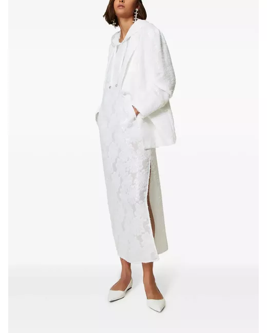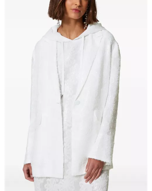 white sequin design front button fastening peak lapels long sleeves two front flap pockets logo plaque straight hem