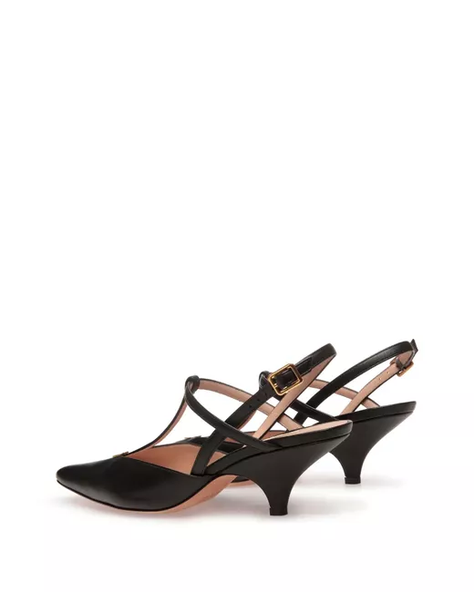 black lambskin Bally Emblem motif pointed toe T-bar strap buckle-fastening slingback strap low heel