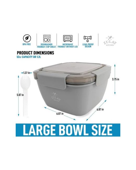 Say goodbye to eating sad, soggy, and unsatisfying salads for lunch. Pack salads that stay fresh all week with the Zulay Kitchen Salad Lunch Box. Designed with a removable compartment tray that holds your add-ons and a separate dressing container.